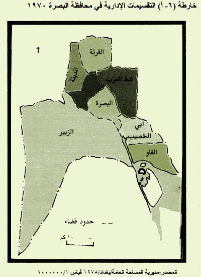 7 ـ خارطة التقسيم الاداري لمحافظة البصرة بمقياس 1 / 1000000 ، مديرية المساحة العامة ، بغداد ، 1995 .