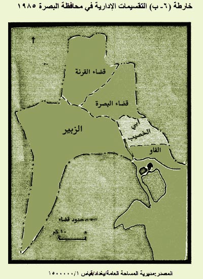 8 ـ خارطة التقسيم الاداري لمحافظة البصرة بمقياس 1 / 1500000 ، مديرية المساحة العامة ، بغداد ، 1985 .